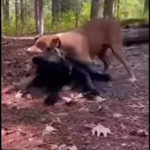 A tense and shocking moment has been captured in a forested area, where a black panther appears to be overpowered by a large, muscular dog. In the…