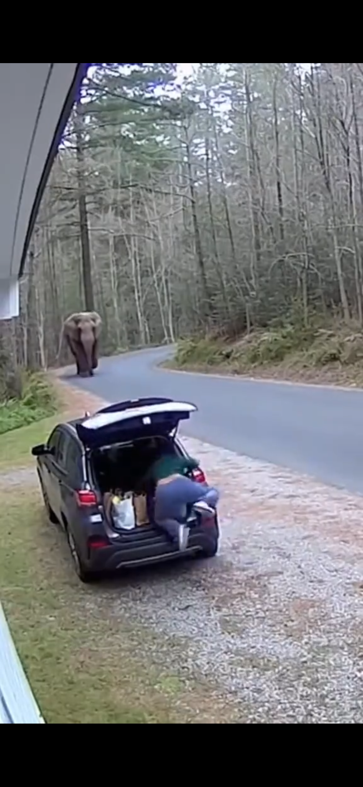 According to reports, the elephant suddenly emerged from the trees and began moving toward the vehicle. Realizing the danger, the girl quickly climbed out and onto the roof of her car in an attempt to avoid the approaching animal. Witnesses say she was shouting in fear as the elephant came closer.